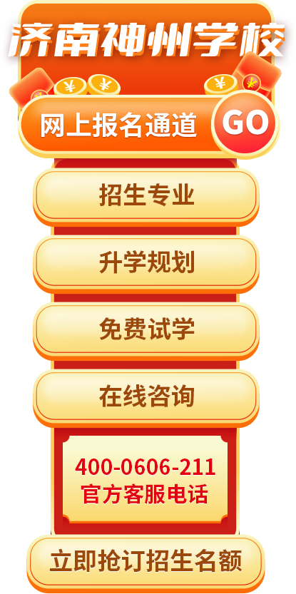让你足不出户认识神州济南神州学校成立于2006年(招生代码∶409),是山东省人社厅和济南市政府主管部门批准成立的拥有正规编制的全日制学校, 开设三年制学历教育。我们坚持诚信为本,质量为先,以升学为唯一目标,多次被评为“全国信誉“诚信建设先进单位”、“团体 优胜学校”知名学校”“全国职业教育先进办学单位”、“全国文明单位”、“优秀党组织师范单位”等荣誉称号。